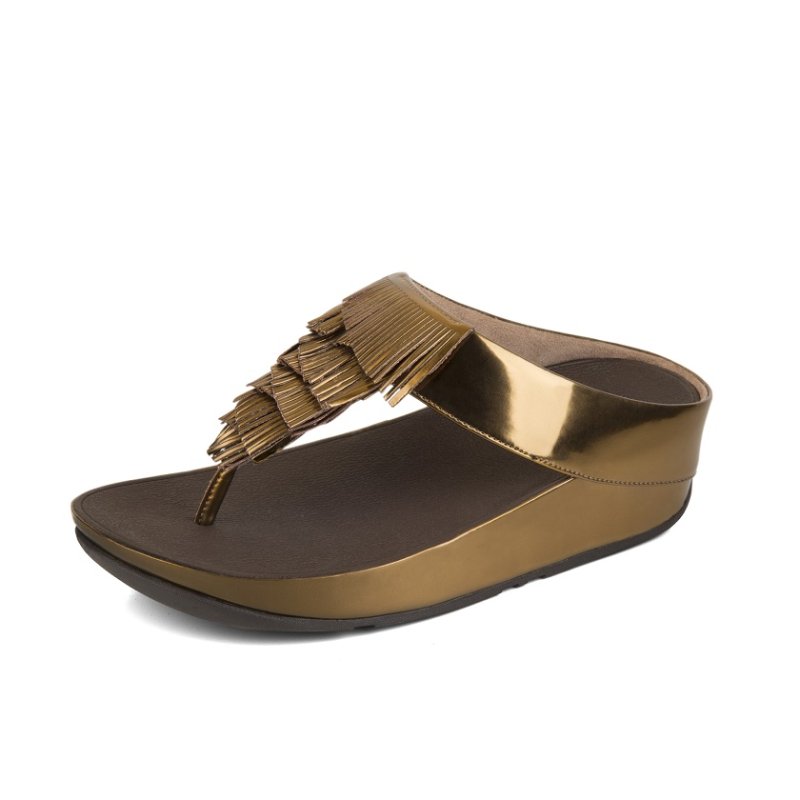 Fitflop CHA CHA TM FRINGE TOE-THONG SANDALS METALLIC PU - BRONZE es (J90-012)