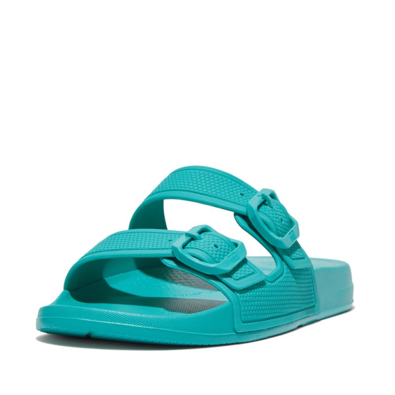 Fitflop IQUSHION TWO-BAR BUCKLE SLIDES - Tahiti Blue - DROP 10 (FD2-A51)